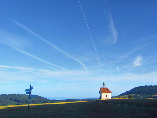 Gott gibt der Kapelle mit den Wolkenstreifen am Himmel eine besondere Bedeutung.